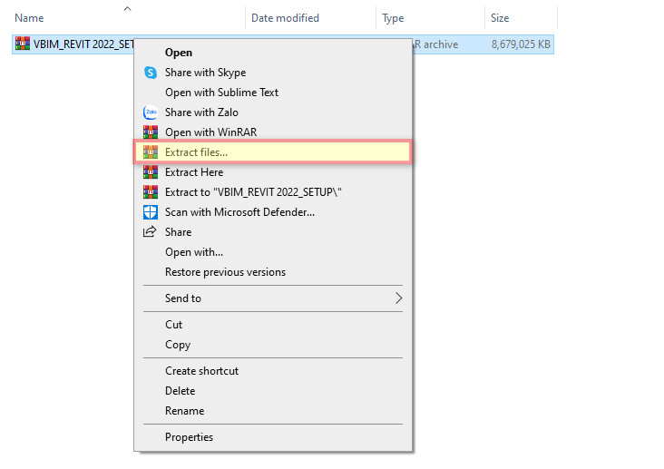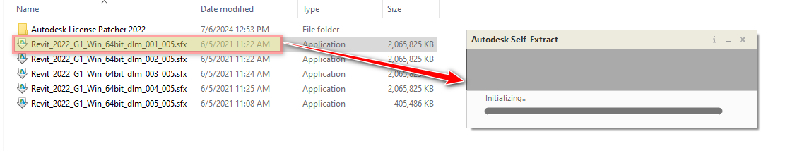 - Mở file Revit_2022_G1_Win_64bit_dlm_001_005.sfx.exe để giải nén thư mục cài đặt vào ổ C.