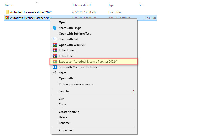 - Giải nén file Autodesk License Patcher 2022 trong thư mục cài đặt.