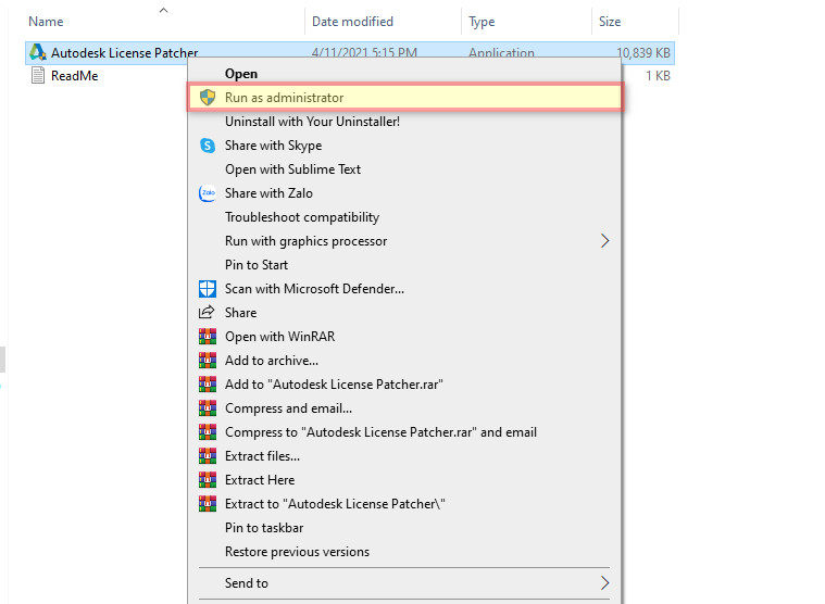 - Click để mở Autodesk License Patcher bằng quyền Run as Administrator.