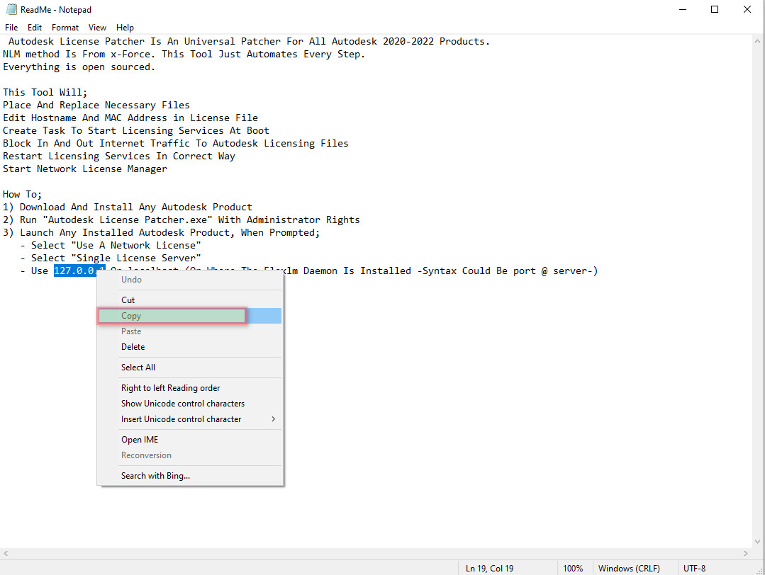 - Mở file ReadMe và chọn Copy mã 127.0.0.1