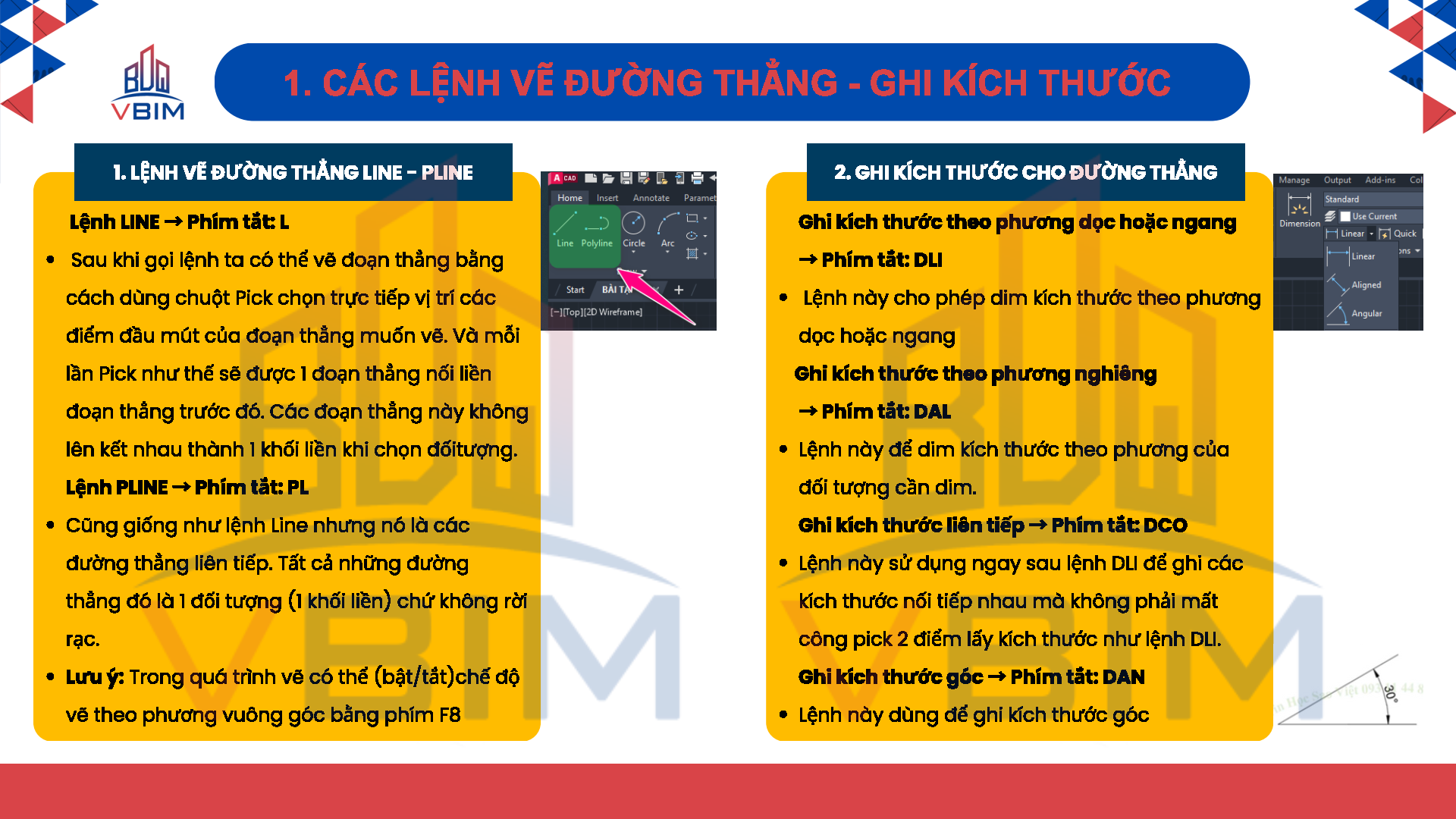 ✓ Các lệnh vẽ đường thằng – Ghi kích thước đường thằng