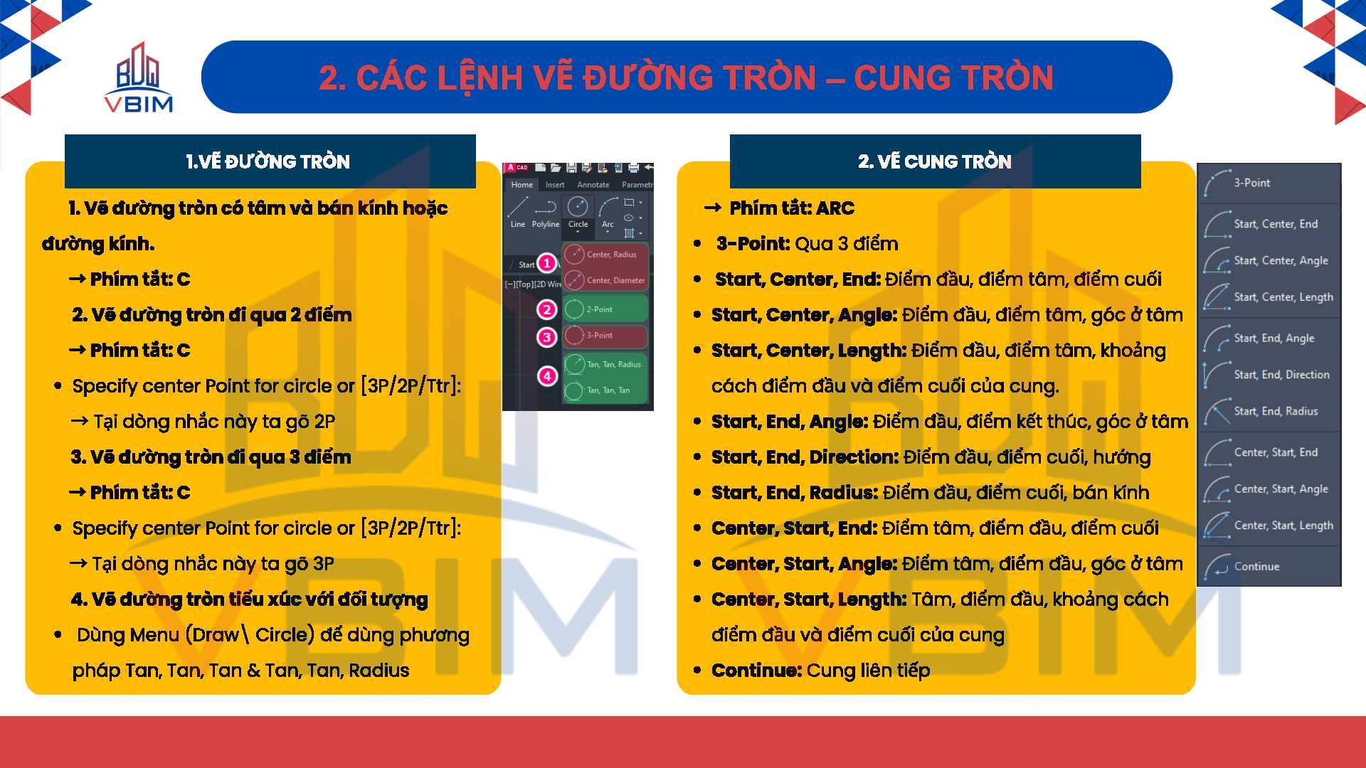 ✓ Các lệnh vẽ đường tròn – Cung tròn