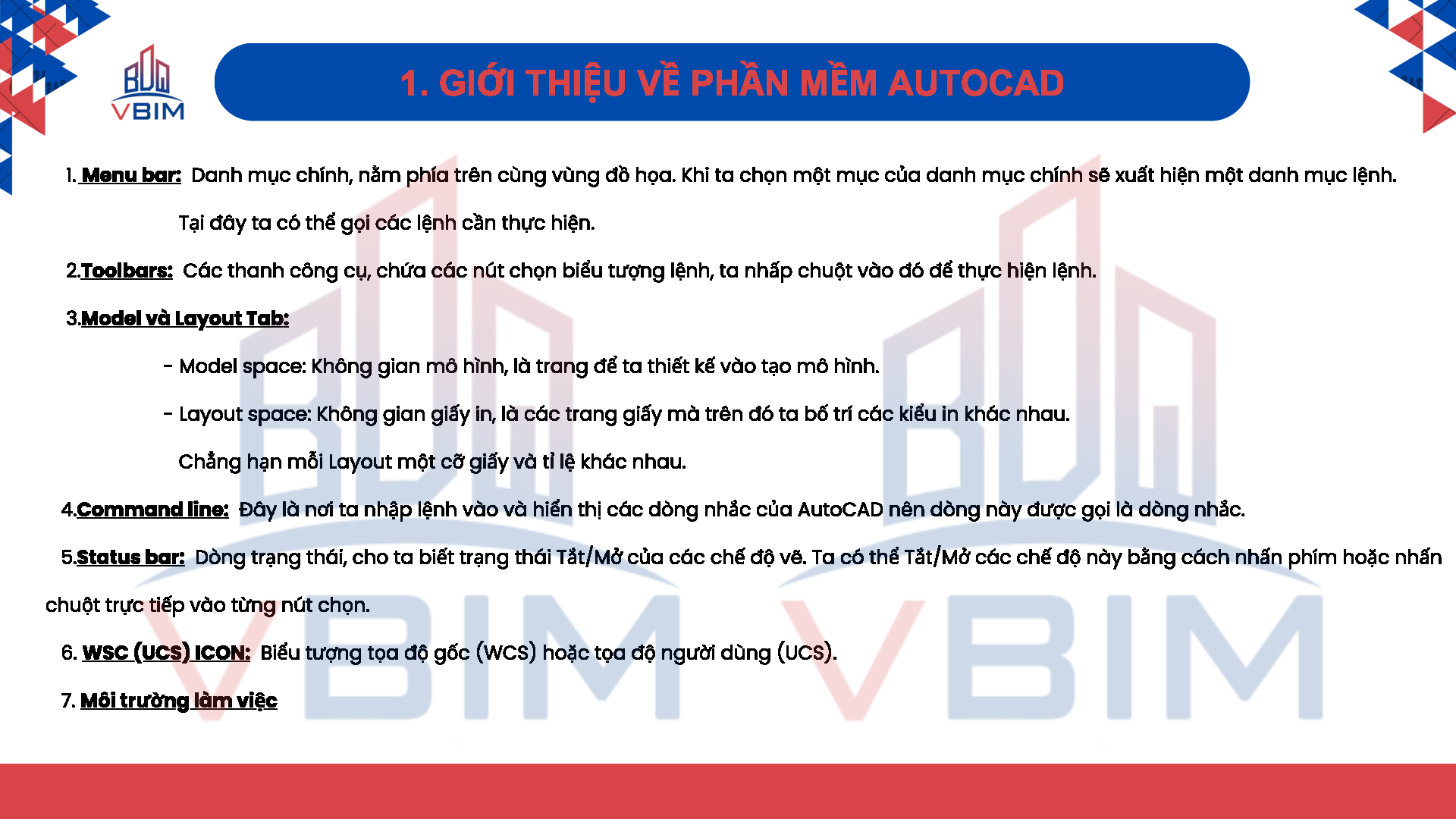 ✓ Giới thiệu AutoCAD và giao diện làm việc