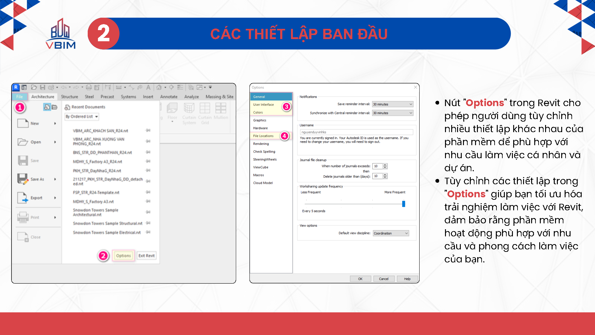 – Buổi 2: Giới thiệu về giao diện Revit, làm quen với các thiết lập ban đầu