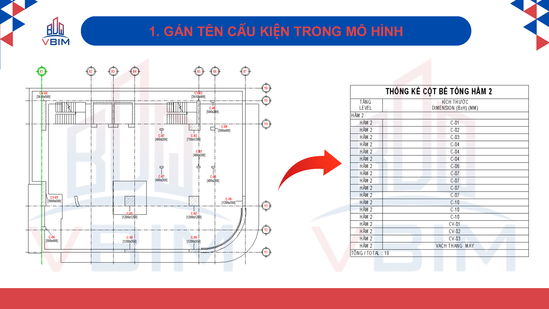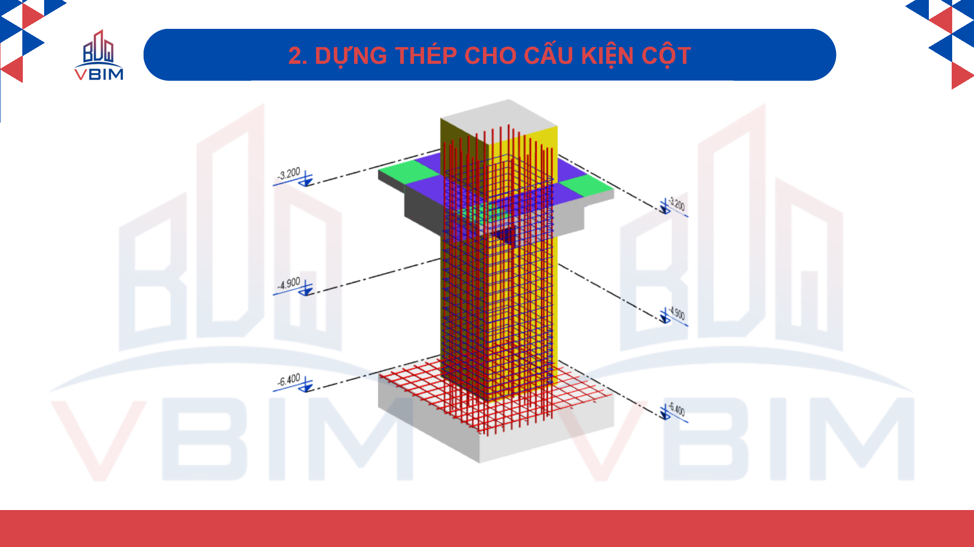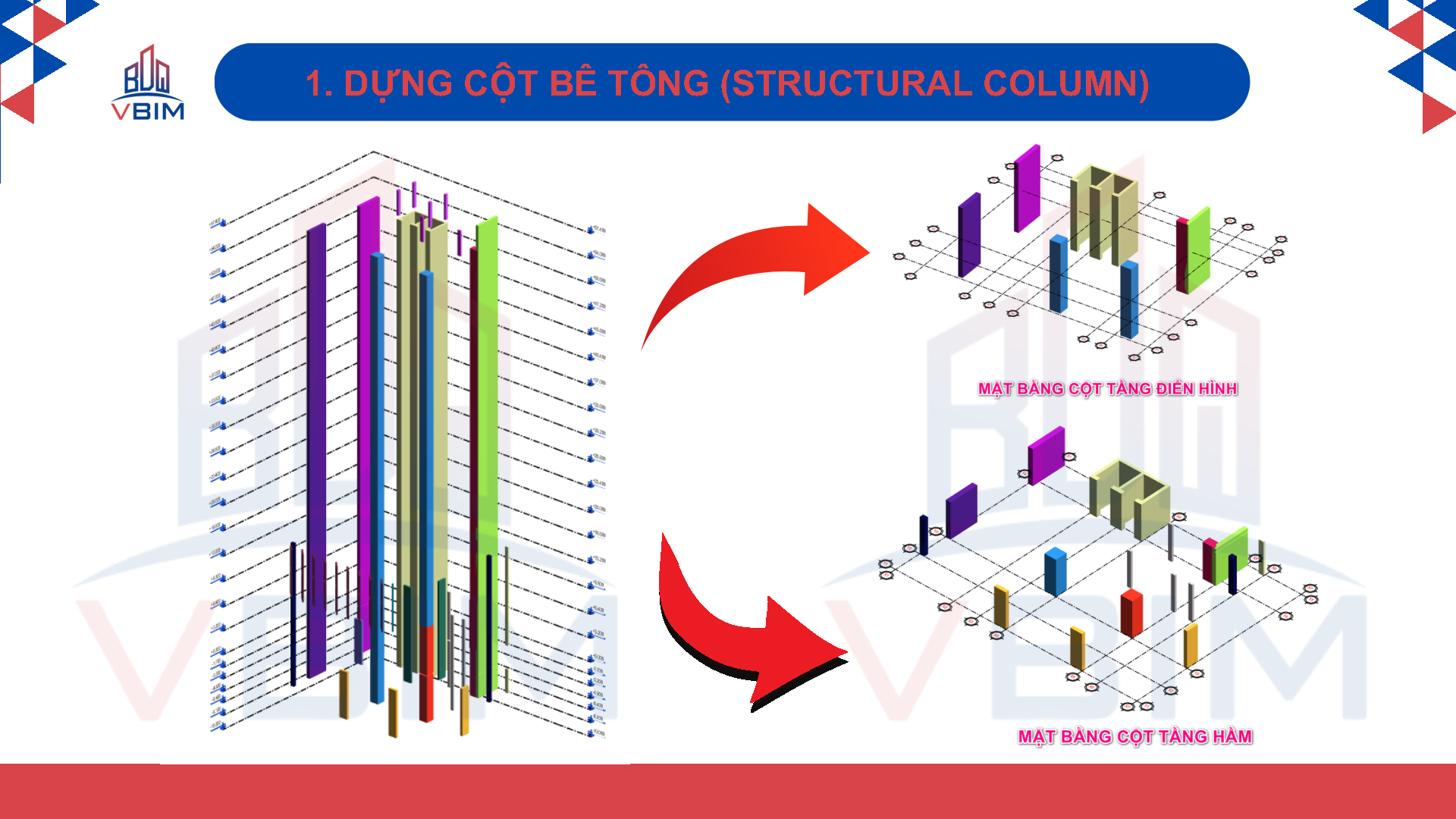 ✓ Dựng cấu kiện Cột Bê Tông → Dựng thủ công và dựng nhanh bằng Addin VBIM Tools
