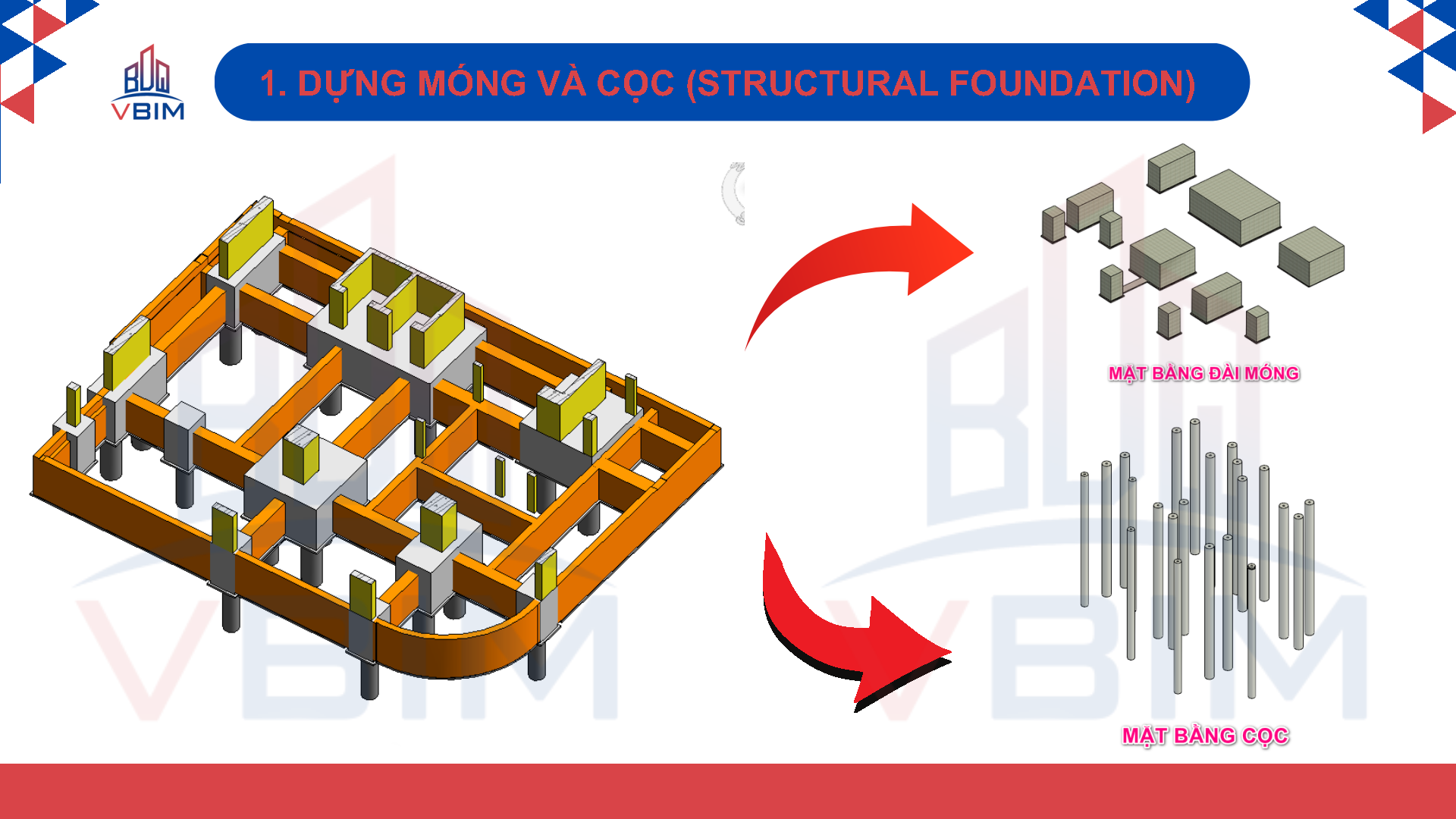 ✓ Dựng Móng và Cọc → Dựng thủ công và dựng nhanh bằng Addin VBIM Tools