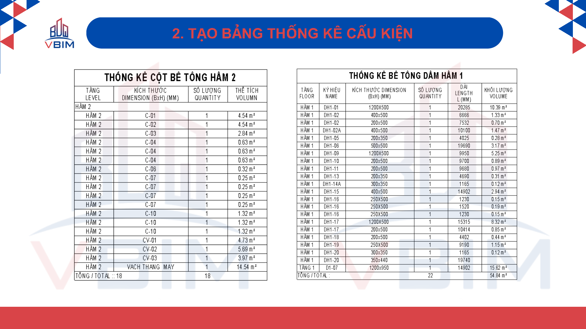 IV. TẠO LẬP BẢNG THỐNG KÊ TRONG REVIT STRUCTURE
