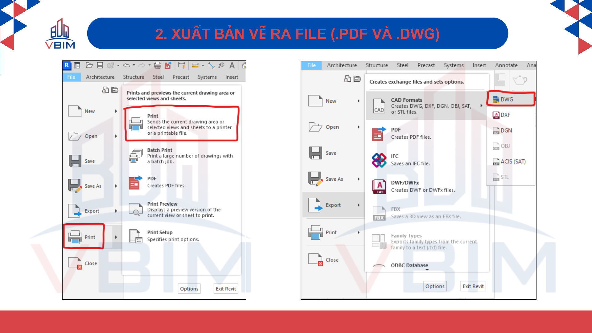 VI. IN ẤN BẢN VẼ VÀ XUẤT CÁC ĐỊNH DẠNG FILE KHÁC NHAU TRONG REVIT STRUCTURE