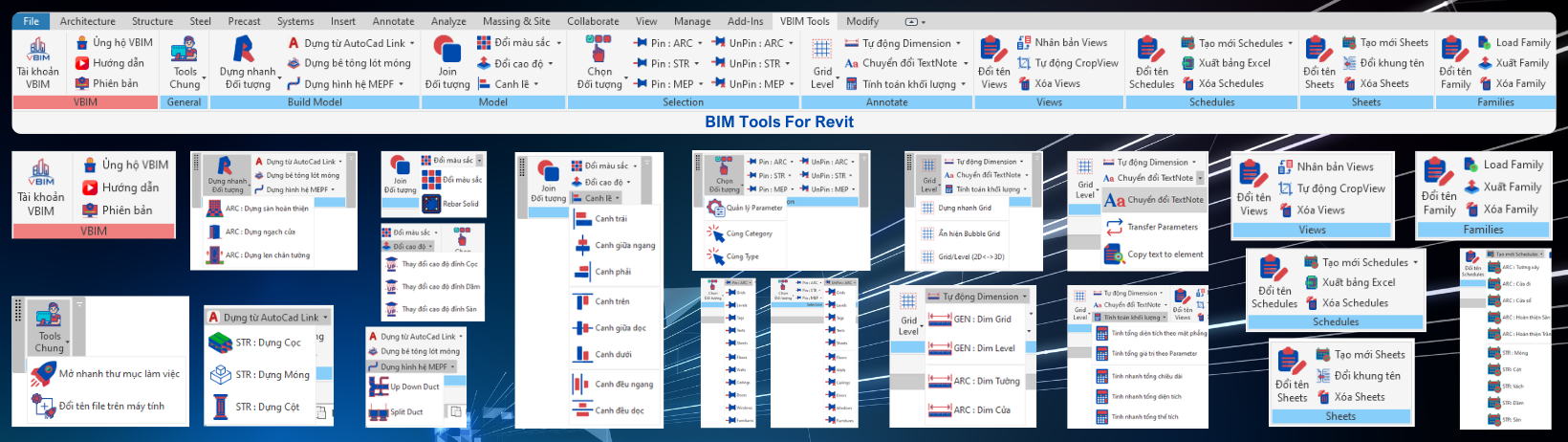 VBIM Tools là bộ công cụ giúp đẩy nhanh công việc xây dựng mô hình và triển khai bản vẽ tự động trên phần mềm Revit